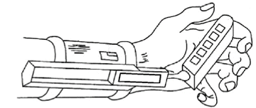 Dedicated Wireless Telephone. The Simplified Handpiece in this model bears the traditional telephone buttons (0-9, # and *). It can be retracted into a slot on the Armpiece and is set on a spring so that it can pop out of this slot easily upon demand. The Armpiece is thin enough to fit under a person’s shirt sleeve and bears nothing but a speaker and microphone for usage as a speakerphone. A significant alternative includes a Handpiece which, unlike a Simplified Handpiece, is jointed in its midsection rather than its end and which includes an earpiece at one end and a mouthpiece at the other.